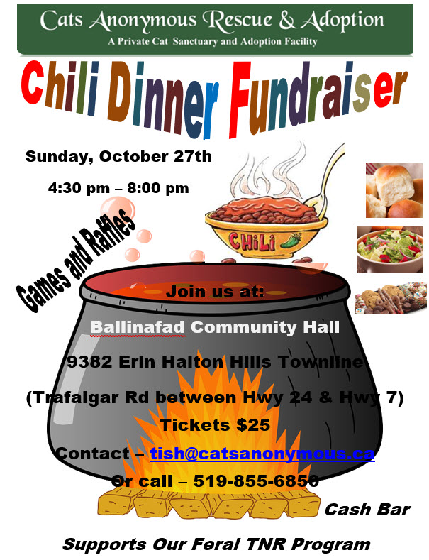 Event Name: Chili Dinner Fundraiser for Cats Anonymous Rescue & Adoption