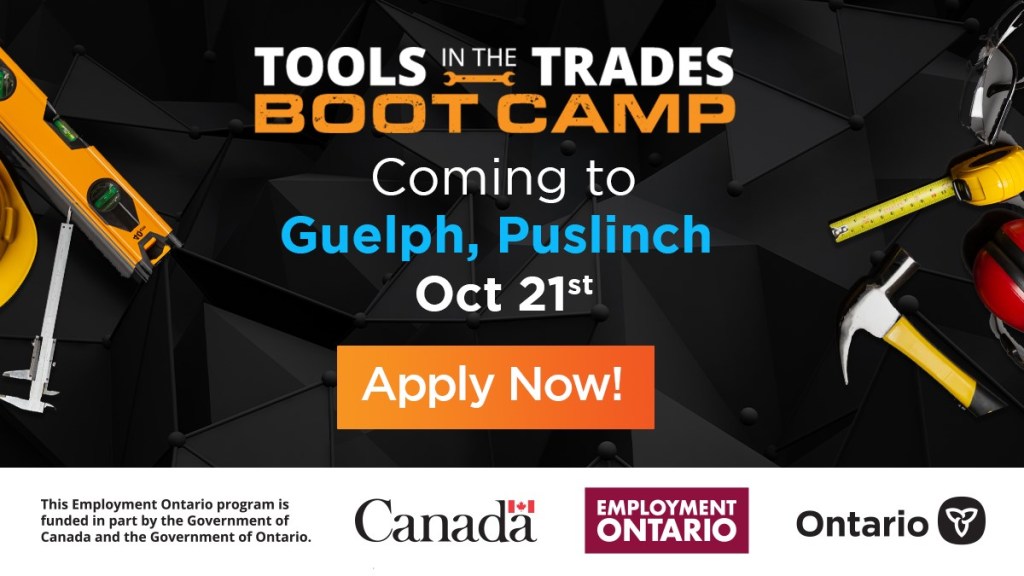 The Tools in the Trades Boot Camp is coming to Guelph on October 21st.