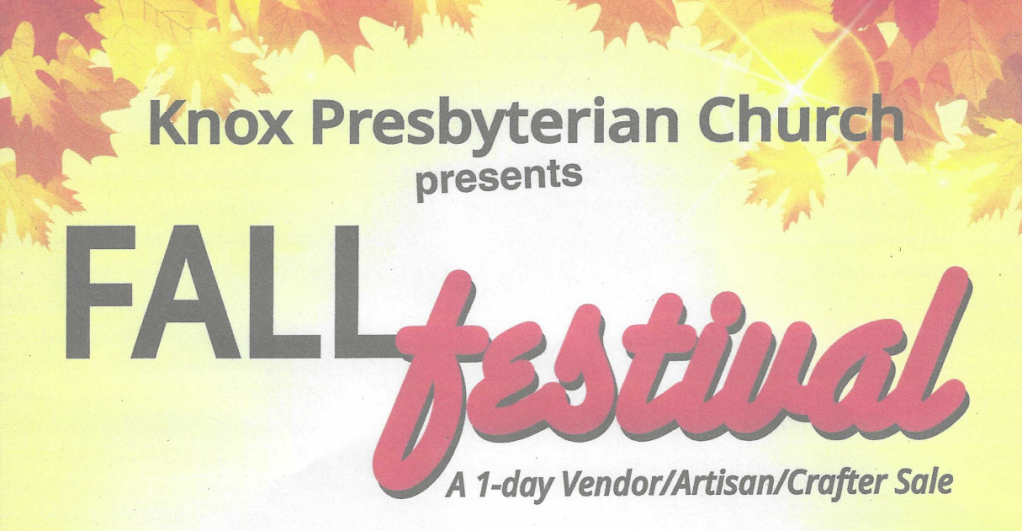 Knox Presbyterian Church presents the Fall Festival! A one day sale featuring local Vendors, Artisans, Crafters, Raffles, and Baked Goods!